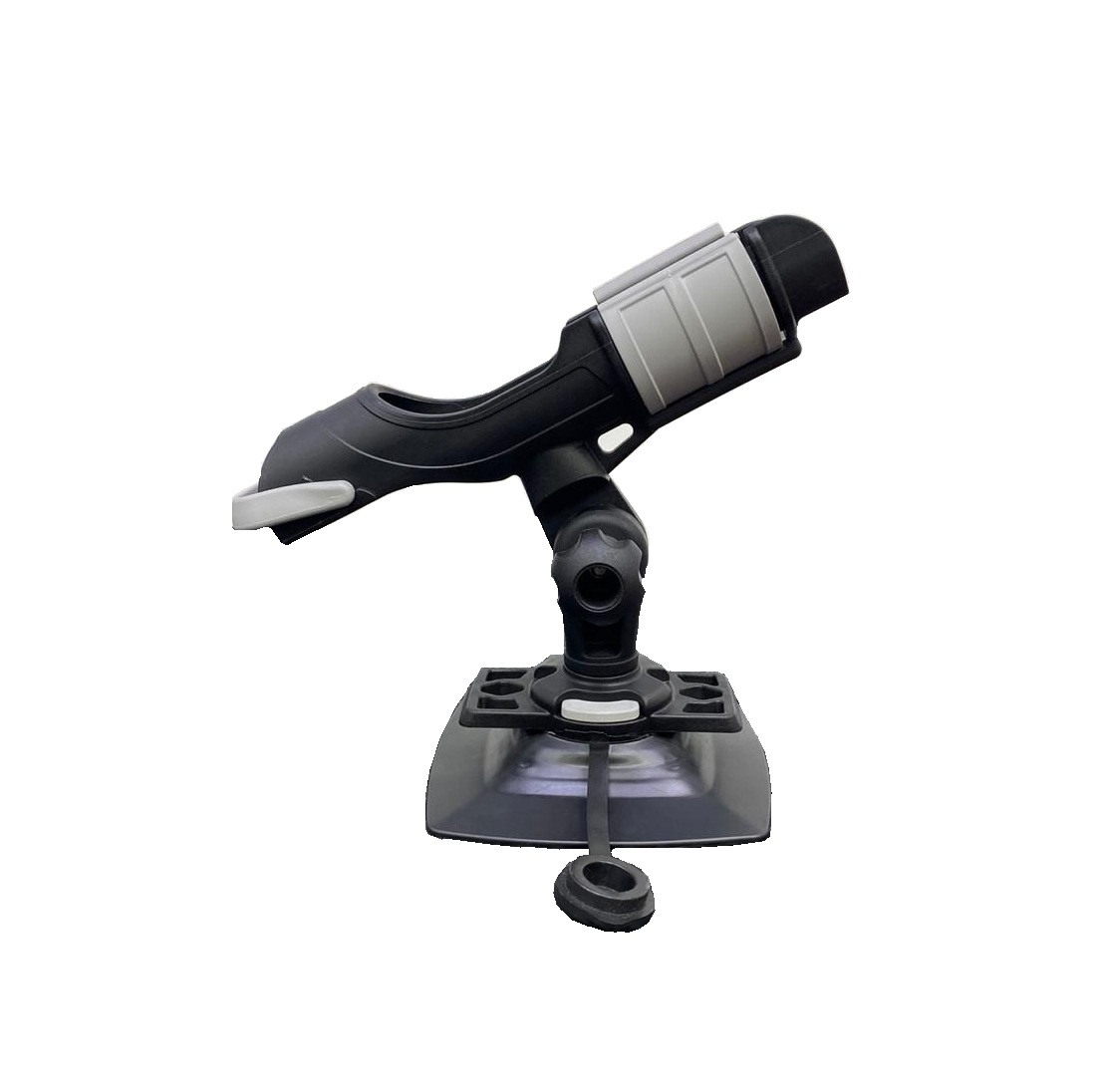 Держатель для спиннинга на надувную лодку, который можно использовать как с надувным бортом лодки, так и с твердой поверхностью. Он надежно фиксирует удилище, освобождая ваши руки. В конструкции предусмотрены страховочное кольцо для катушки и упор для регулировки глубины посадки. Держатель имеет "уши" для привязки к лееру, регулировку угла наклона и вращение на 360° с фиксацией