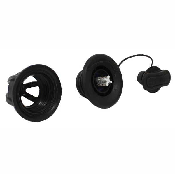 Полуоборотный воздушный клапан для лодки ПВХ вставляется в отверстие баллона. Он состоит из двух основных частей: внешнего корпуса с внутренней резьбой, который встроен в баллон, и выкручивающегося блока клапана с наружной резьбой. Блок клапана включает в себя корпус с мембраной из эластомера, поворотную кнопку с пружиной из нержавеющей стали и крышку с силиконовой прокладкой. Мембрана и уплотнение на крышке обеспечивают отличную воздухонепроницаемость, а поворотная кнопка упрощает процесс накачивания лодки и позволяет легко переключать положение клапана между «закрыто» и «открыто». Благодаря крышке с уплотнением клапан защищён от грязи и механических повреждений, что продлевает срок его службы.
