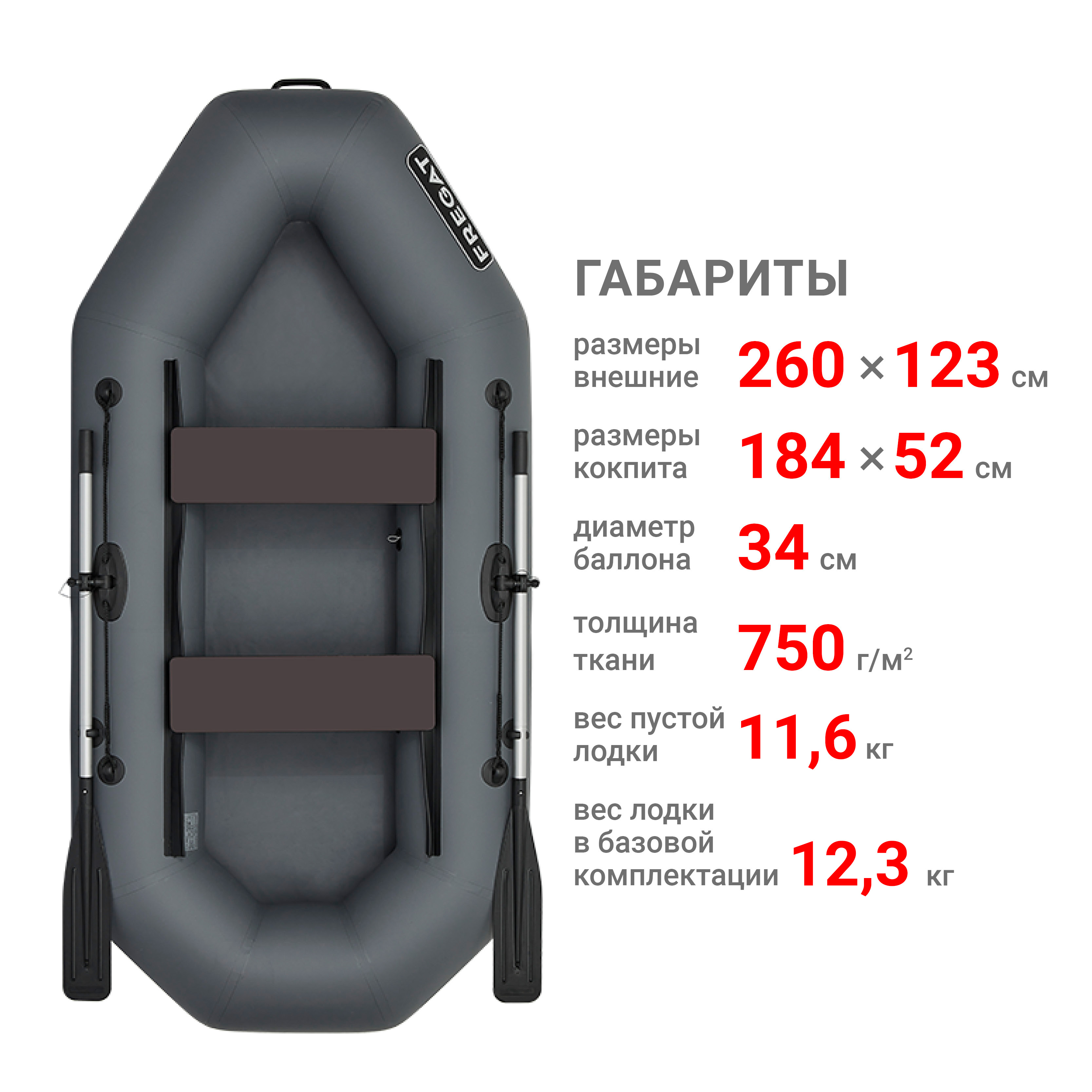 Лодка Фрегат М-2 Оптима (260 см) комплектуется легкими алюминиевыми веслами со съемной лопастью. Весла устанавливаются в эффективные поворотные уключины, значительно облегчающие процесс гребли.