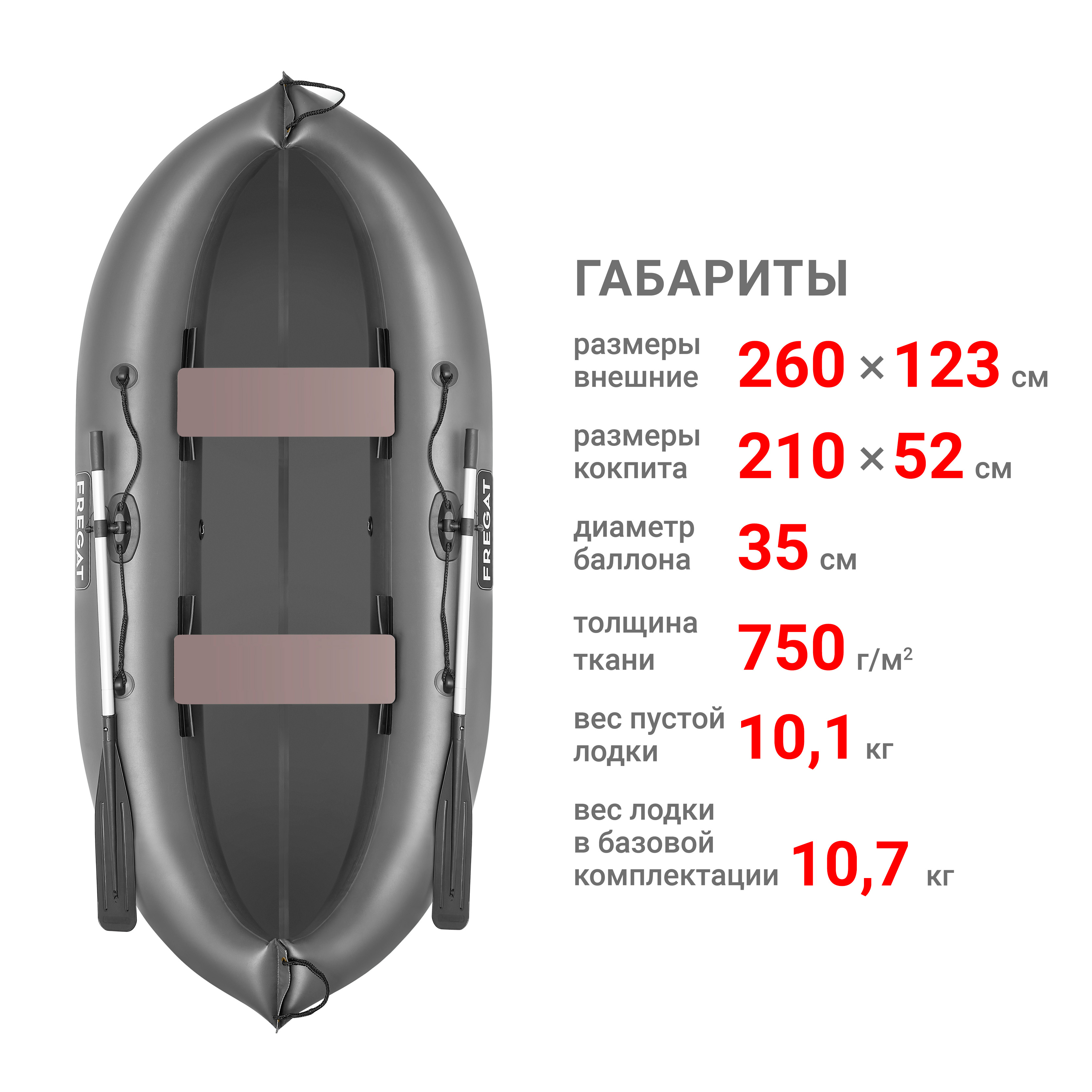 Лодка Фрегат М-2У (260 см) комплектуется легкими алюминиевыми веслами со съемной лопастью.Весла устанавливаются в эффективные поворотные уключины, значительно облегчающие процесс гребли.