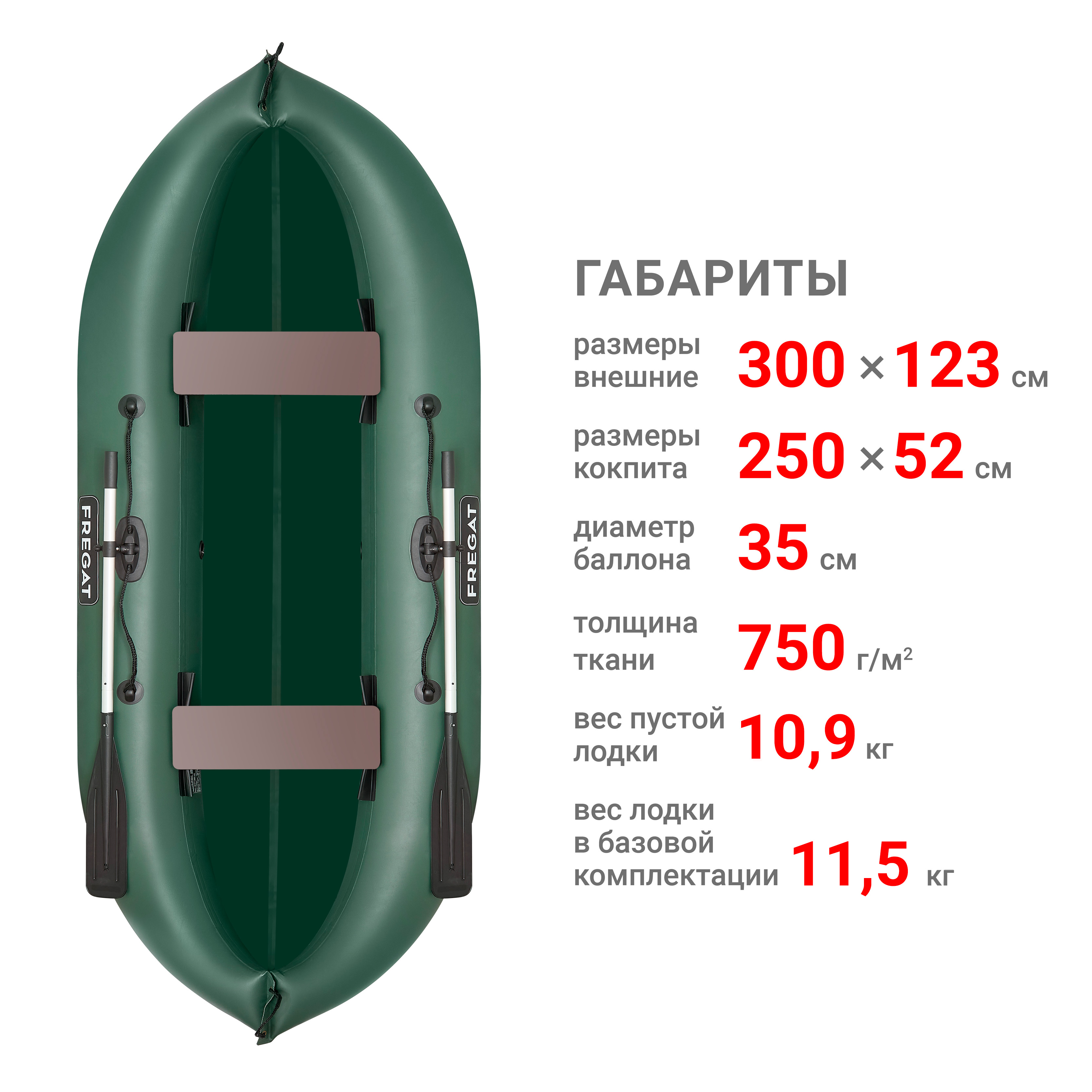 Лодка Фрегат М-5У (300 см) комплектуется легкими алюминиевыми веслами со съемной лопастью. Весла устанавливаются в эффективные поворотные уключины, значительно облегчающие процесс гребли.