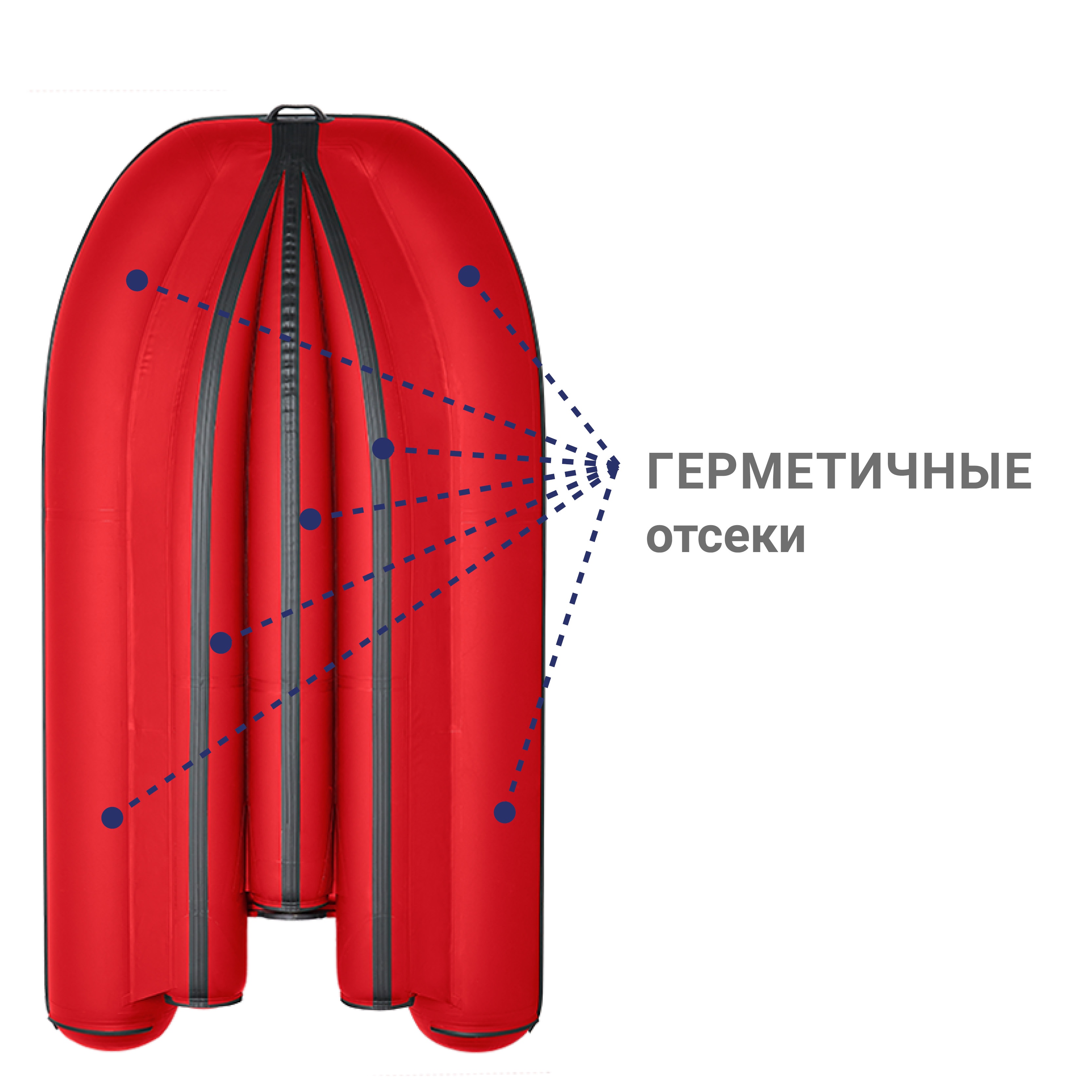 Поднятая над уровнем воды Самоосушаемая палуба, даже при максимальной расчетной загрузке лодки будет находится на 100–120 мм выше уровня воды. Поэтому при заливании надувной лодки водой, она автоматически уходит через сливные отверстия (4 шпигата) в межбаллонное пространство днища и далее — за борт.
