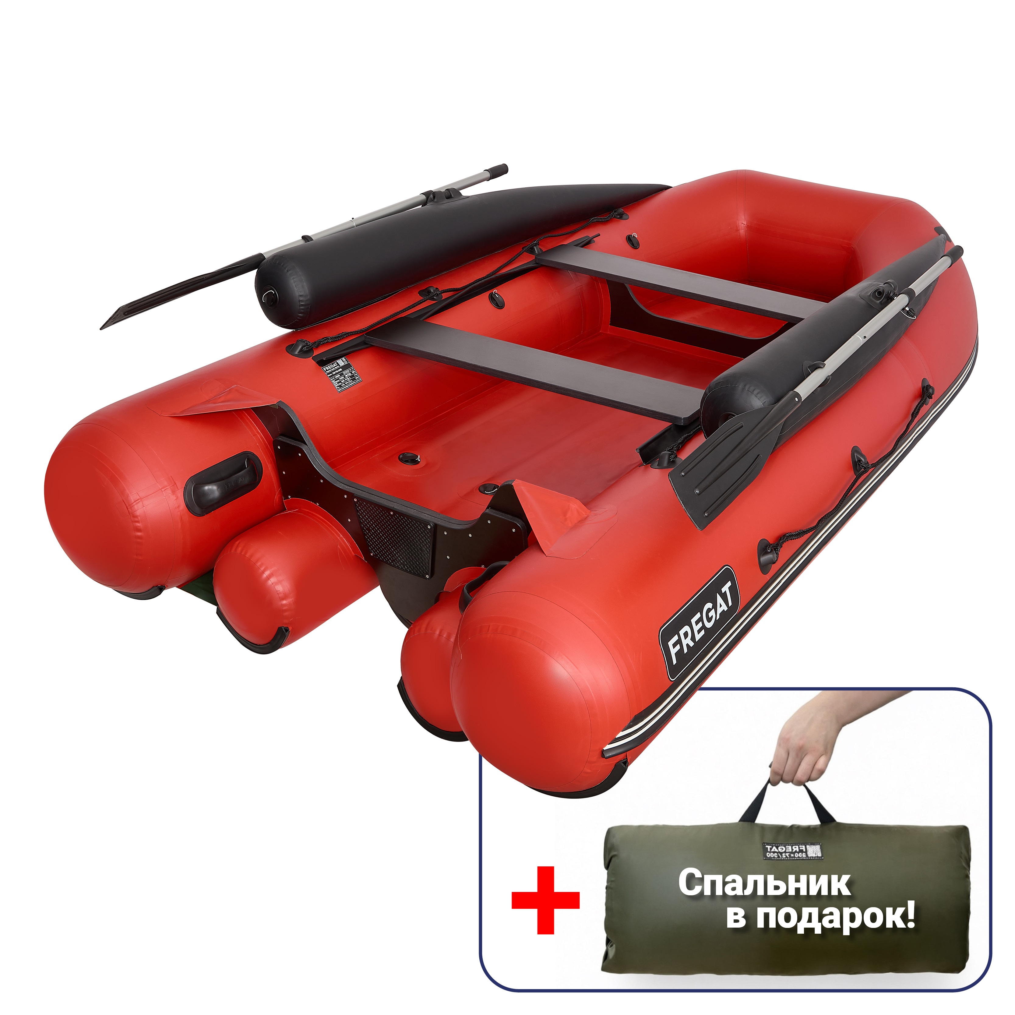 Лодка, весла, сумка, паспорт, ножная помпа (насос), ремкомплект. В сложенном состоянии Фрегат 330 FM перевозится в одной упаковочной сумке.