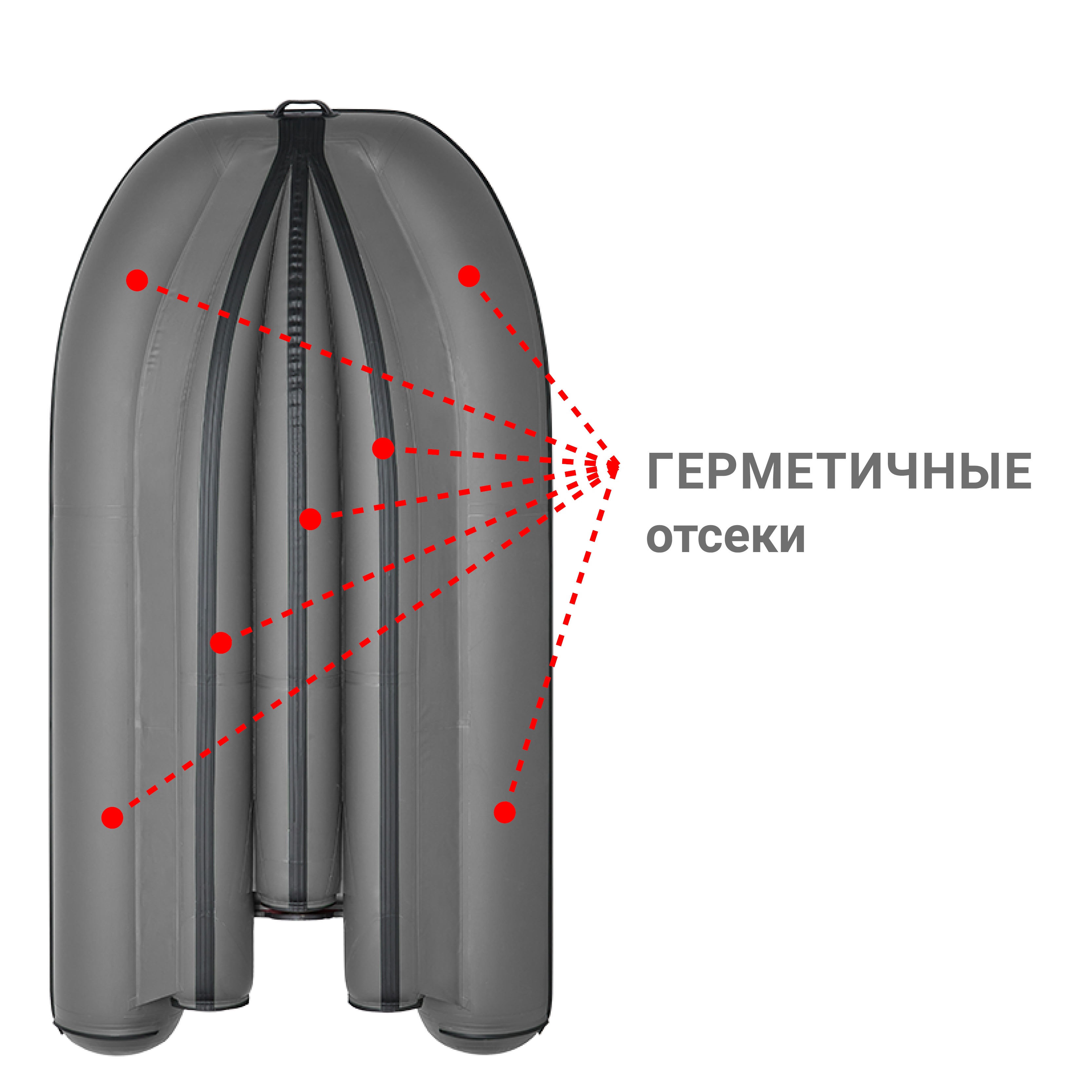 Поднятая над уровнем воды самоосушаемая палуба, даже при максимальной расчетной загрузке лодки будет находится на 100–120 мм выше уровня воды. Поэтому при заливании надувной лодки водой, она автоматически уходит через сливные отверстия (4 шпигата) в межбаллонное пространство днища и далее — за борт.