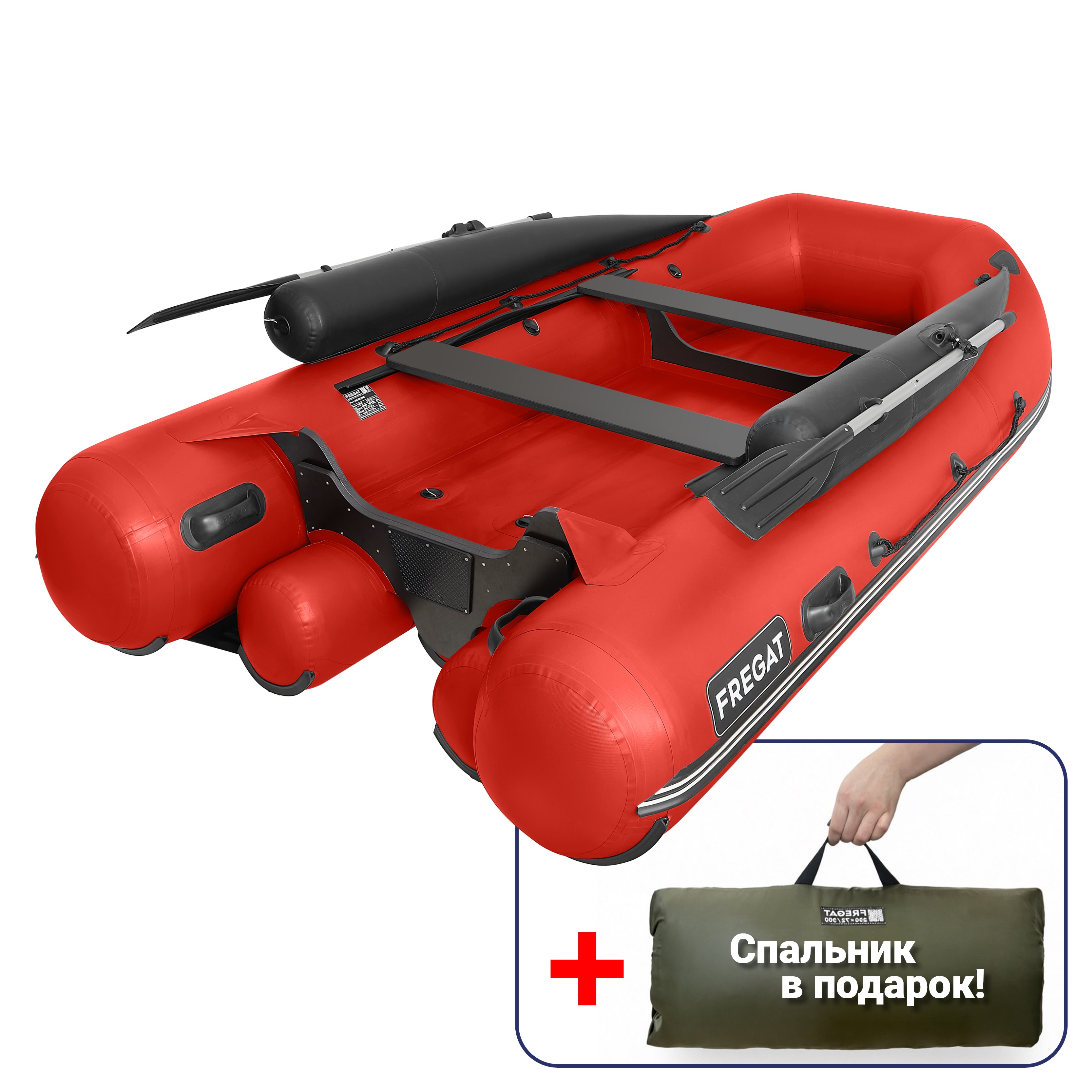Лодка, весла, сумка, паспорт, ножная помпа (насос), ремкомплект. В сложенном состоянии Фрегат 370 FM перевозится в одной упаковочной сумке.