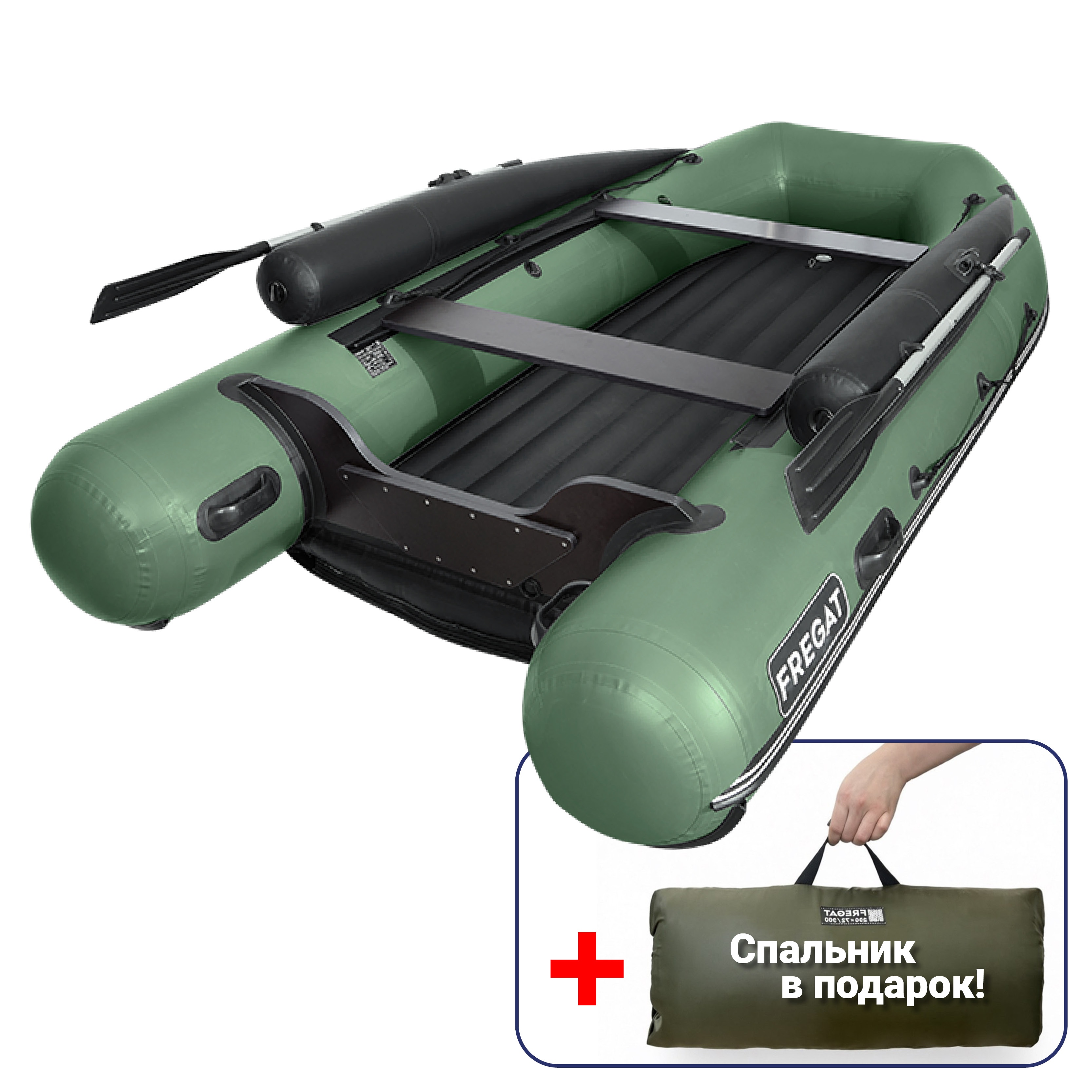 У лодок Фрегат серии Air надувное дно низкого давления. Конструкция надувного V-образного дна образована комплектом продольных переборок и вклеена в корпус надувной лодки. Благодаря тщательно распределенному по длине надувного дна углу килеватости корпус лодок Фрегат серии «Air» сглаживает удары при движении лодки по волне, обеспечивая комфортный, мягкий ход. Днище НДНД имеет необходимую жесткость и обеспечивает высокие скоростные характеристики, позволяя моторной лодке выходить на глиссирование с лодочным мотором малой мощности. Благодаря жестко вклеенному надувному килевому дну в надуных лодках серии Air пайол из фанеры не требуется. Беспайольные лодки этой серии имеют значительно меньший вес, чем классические пайольные. Надувное дно низкого давления в конструкции лодки обеспечивает большую грузоподъемность и вместимость в сочетании с легкой и компактной упаковкой, что очень удобно в эксплуатации и транспортировке.