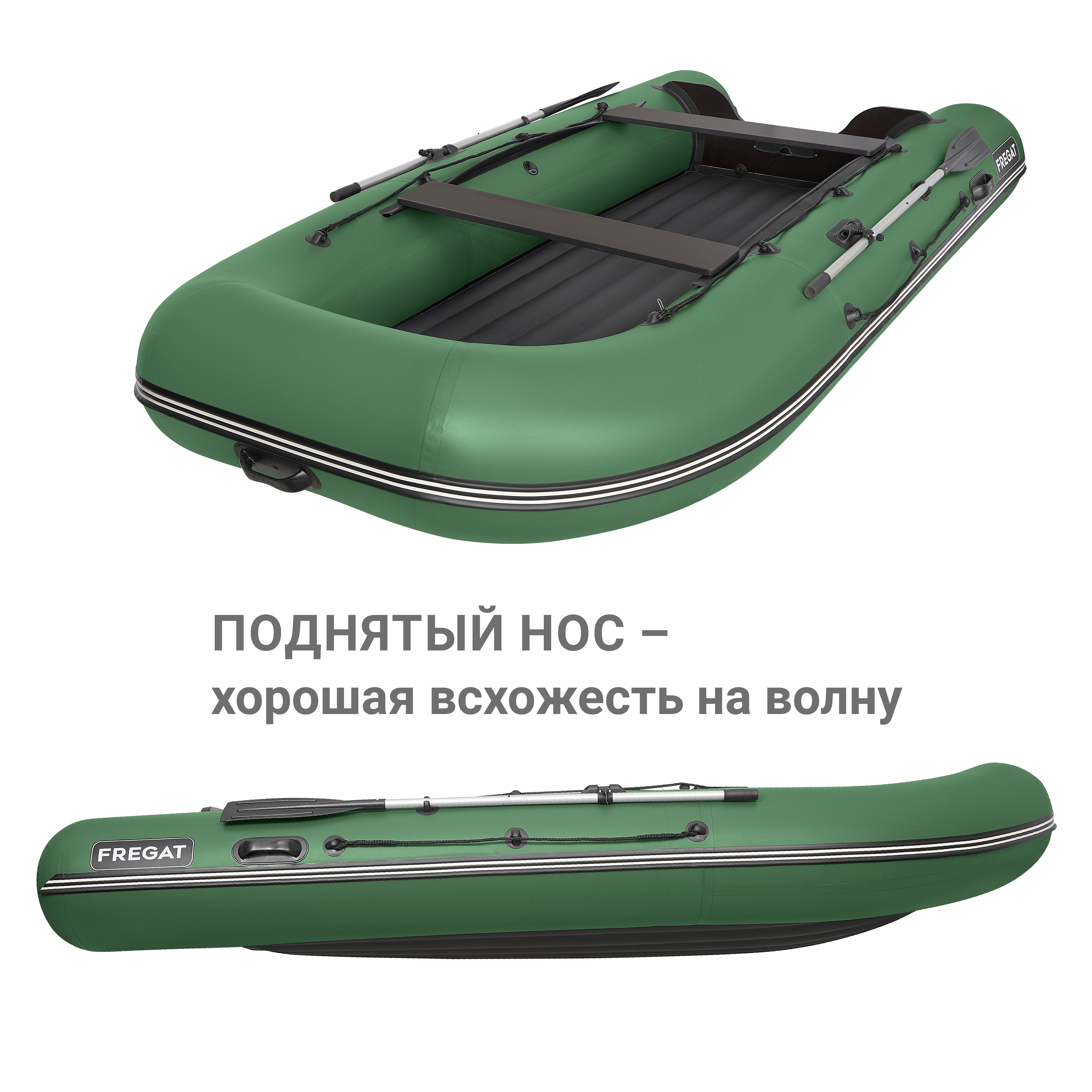У лодок Фрегат серии Air надувное дно низкого давления. Конструкция надувного V-образного дна образована комплектом продольных переборок и вклеена в корпус надувной лодки. Благодаря тщательно распределенному по длине надувного дна углу килеватости корпус лодок Фрегат серии «Air» сглаживает удары при движении лодки по волне, обеспечивая комфортный, мягкий ход. Днище НДНД имеет необходимую жесткость и обеспечивает высокие скоростные характеристики, позволяя лодке выходить на глиссирование с лодочным мотором малой мощности. Благодаря тщательно распределенному по длине надувного дна углу килеватости, корпус лодок Фрегат серии «Air» сглаживает удары при движении лодки по волне, обеспечивая комфортный, мягкий ход.