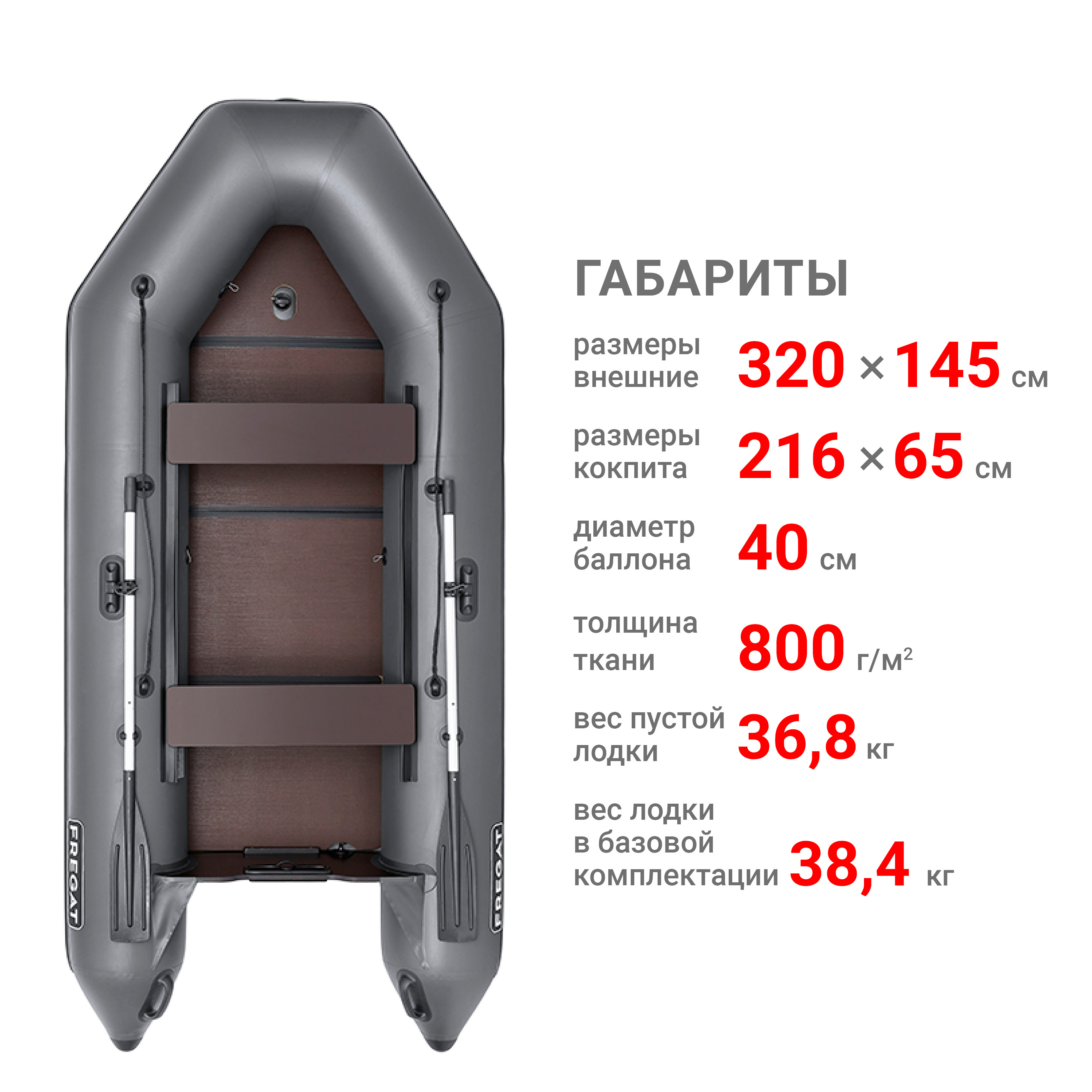 Фрегат 320 EK — это килевая надувная моторная лодка из ПВХ длиной 3,20 м, рассчитанная на 4-х пассажиров, под мотор до 9,8 л. с. Это легкая, компактная, надёжная, быстрая и хорошо управляемая лодка с жестко вклеенным транцем. Предназначена для рыбалки, охоты и активного отдыха на воде. В отличие от лодок Фрегат 280 Е, 300 Е эта модель выпускается с надувным килем, приклеенным к днищу, поверх которого укладывается жесткий складной пайол.