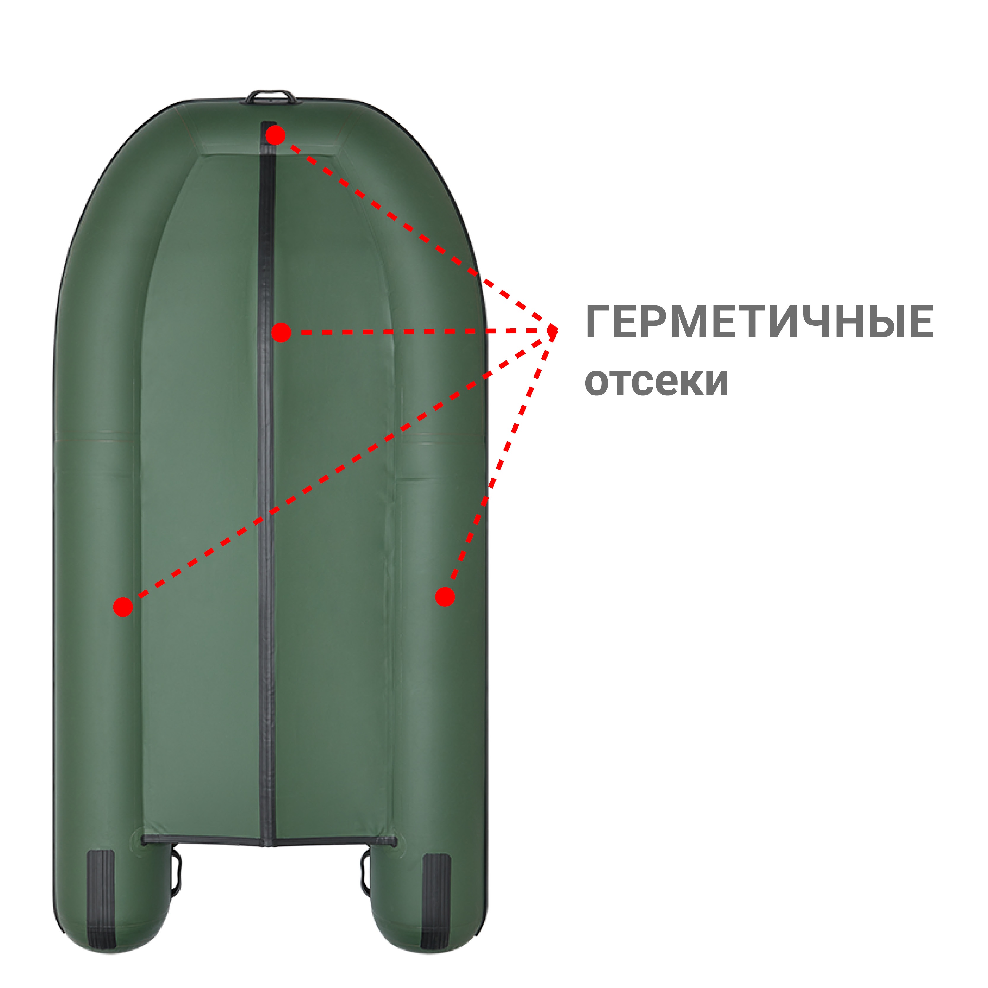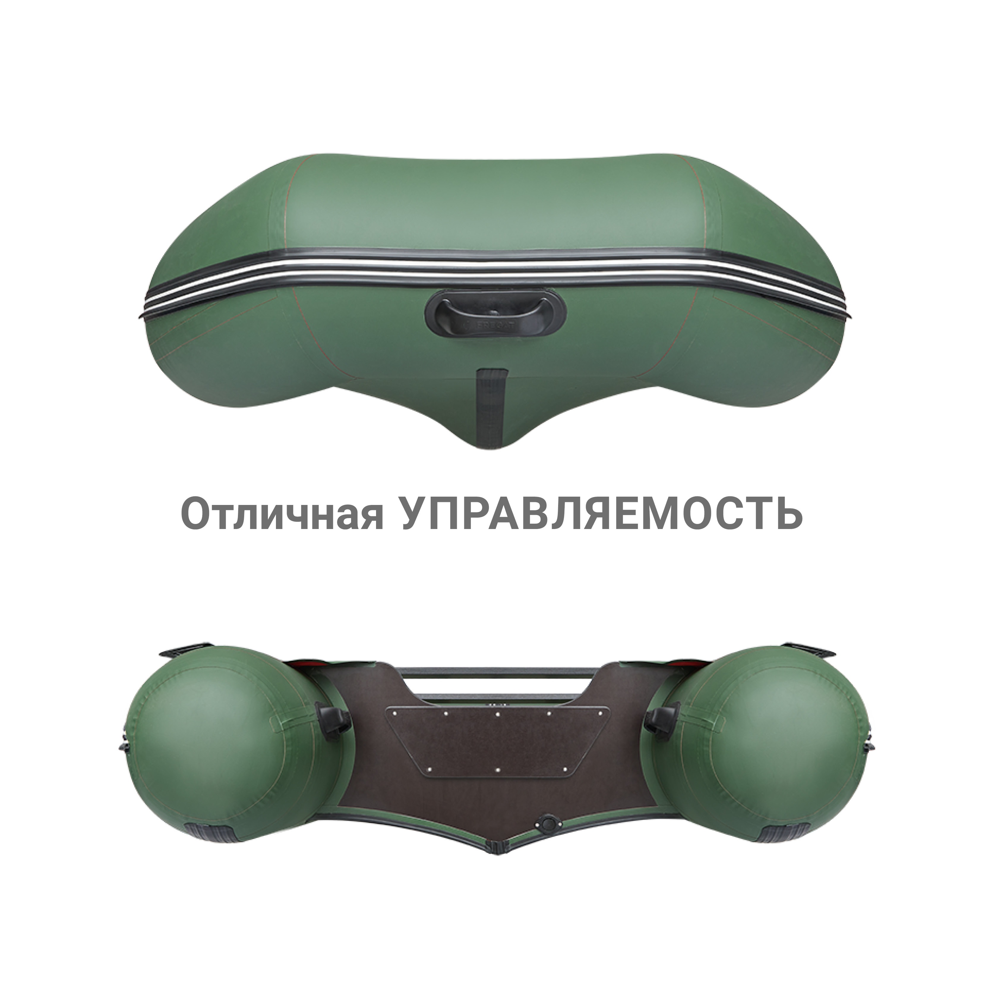 U-образный баллон с перегородками и вклеенным транцем Фрегат 330 С состоит из «U»-образного баллона, разделенного на 3 независимых отсека внутренними перегородками и замкнутого в корме вклеенным жестким транцем. Снизу к корпусу лодки приклеено днище и надувной киль. Перегородки баллона находятся под поворотными уключинами. Благодаря такой конструкции, даже в случае повреждения одного из отсеков, надувная лодка остается на плаву и сохраняется возможность эффективно работать веслами. По бортам расположен леерный пояс, обеспечивающий страховку пассажиров.
