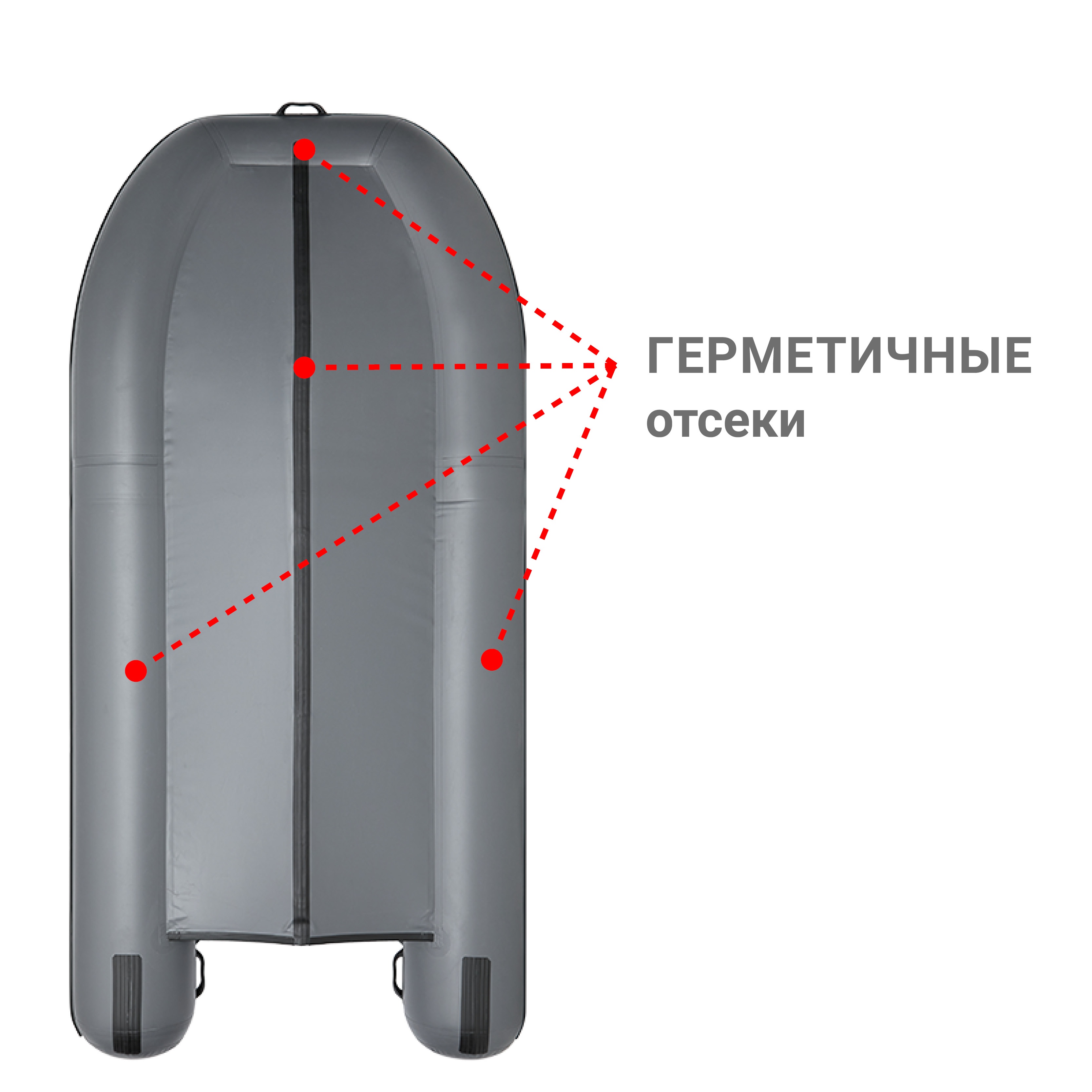 - Транец в форме «крыла чайки» улучшает управляемость моторной лодки и минимизирует возможность прохвата воздуха к винту даже при резких маневрах, а также позволяет эксплуатировать лодку с более тяжелыми 4-тактными моторами. - Косынки-брызгоотбойники на транце эффективно защищают внутреннее пространство лодки от попадания воды.