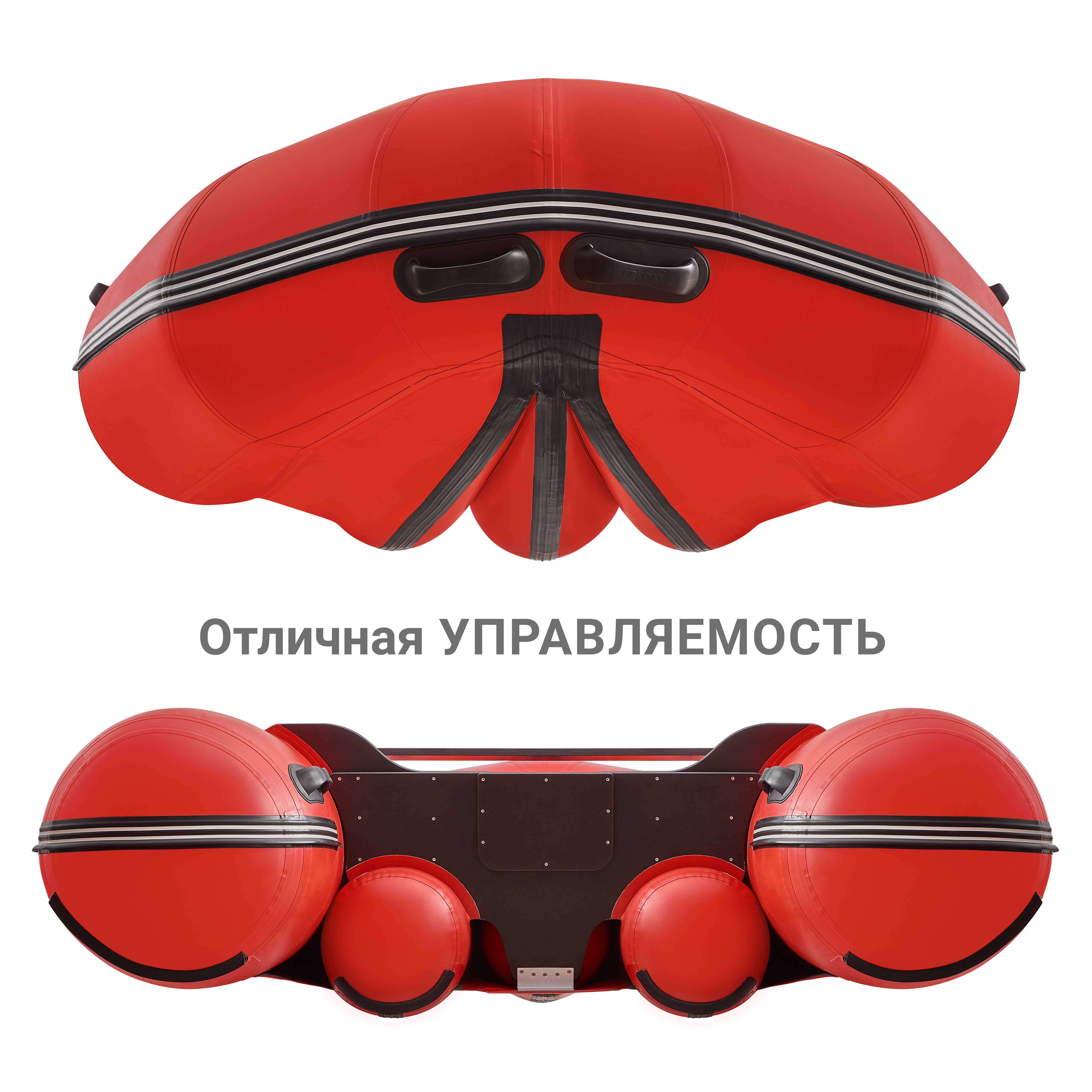 Установленный привальный брус выполняет функцию не только защиты корпуса, но и брызгоотбойника. Срезанная часть центрального баллона имеет плоскую поверхность, переходящую в антикавитационный козырек, благодаря чему заборная часть водомета находится «в тени» корпуса лодки и даже в случае наезда на препятствие не будет повреждена.