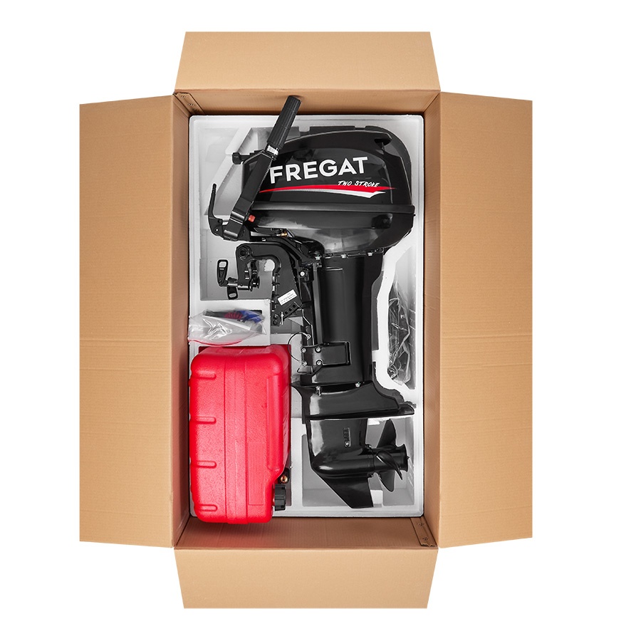 FREGAT 9.9FHS - двухцилиндровый подвесной лодочный мотор мощностью 9.9 л.с. При рабочем объеме в 246 куб. см, силовая установка способна выдавать мощность в 9.9 лошадиных сил. Двухтактный двигатель FREGAT 9.9FHS отличается массой в 36 кг, что позволяет без проблем устанавливать его на 381-мм транец.