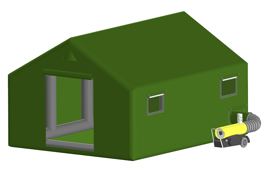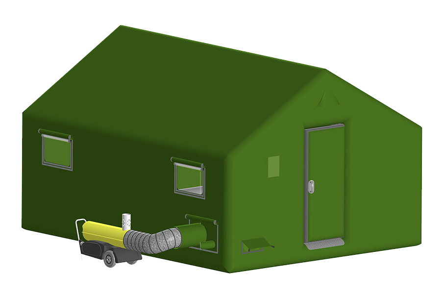 Благодаря передовым технологиям и высокотехнологичному оборудованию, применяемым при производстве пневмокострукций, пневмодули Фрегат (надувные палатки) не требует постоянного поддува. Несущий герметичный пневмокаркас арочный с продольными балками и нижней обвязкой, с 2-х скатной крышей, выполнен из специальной армированной газодержащей морозостойкой ПВХ-ткани, с клапанами наддува и предохранительным клапаном для стравливания избыточного давления. Швы арочного несущего пневмокаркаса палатки выполнены с применением современной технологии сварки горячим воздухом. Водонепроницаемый пол выполнен из армированной морозостойкой ПВХ ткани, имеет противозаливной борт, герметично прикреплен к пневмокаркасу. Все швы пола пневмомодуля герметичны и проварены тепловой сваркой. Внешний тент из морозостойкой водонепроницаемой ПВХ-ткани герметично прикреплен к пневмокаркасу. Внешний тент обладает системой естественной циркуляции воздуха, защищенной противомоскитными сетками. По наружному нижнему периметру внешний тент имеет защитную юбку, отводящую осадки от днища палатки и ручки для переноса пневмосооружения. Цвет внешнего тента согласуется с Заказчиком. Применяется для организации ПВР (пунктов временного размещения), жилья в полевых условиях, в зонах чрезвычайных ситуаций, полевых госпиталей, командных пунктов, размещения техники и имущества и для других целей.