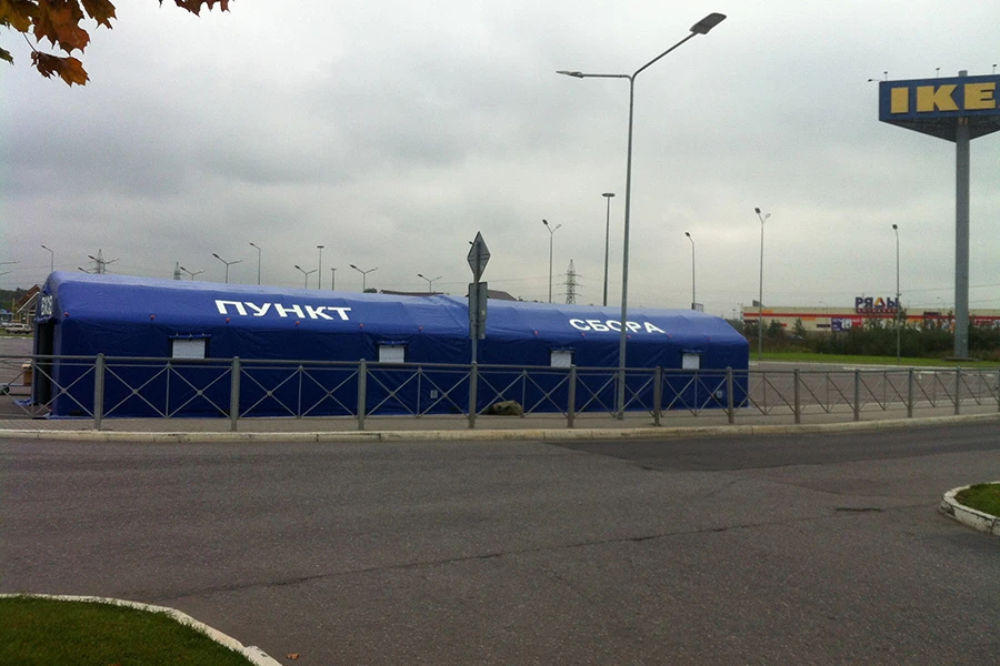 По желанию заказчика для идентификации на внешний тент пневмокаркасного модуля могут быть нанесены надписи, гербы и символика.